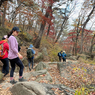 We subwayed one hour to the East side of the park and walked 2 km to the trailhead. I was expecting the road part to kinda suck but it was actually nice - there weren’t many cars and there were a number of hiking clothing stores, convenience stores and cafes which we skipped, eager to start our hike. The first chunk of the hike was easy enough. There were some stair sections - the classic rocky stairs we’ve seen in other parks. The fall leaves were beautiful and we had fresh legs and lots of snacks and water.